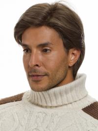 100% Hand-Tied Brown Straight Men’s Wig – Short Natural Look