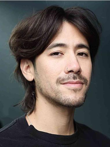 Black Shoulder Length Layered Wig for Men Mono Cap