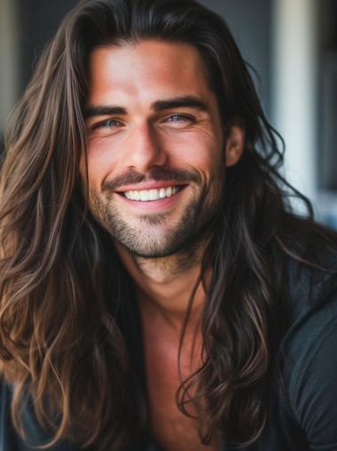 Brown Long Wavy Remy Human Hair Wig for Men