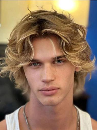 Human Hair Blonde Wavy Lace Front Wig - 8" Short Style