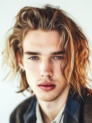 Lace Wigs for Men - Blonde Wavy Style Without Bangs